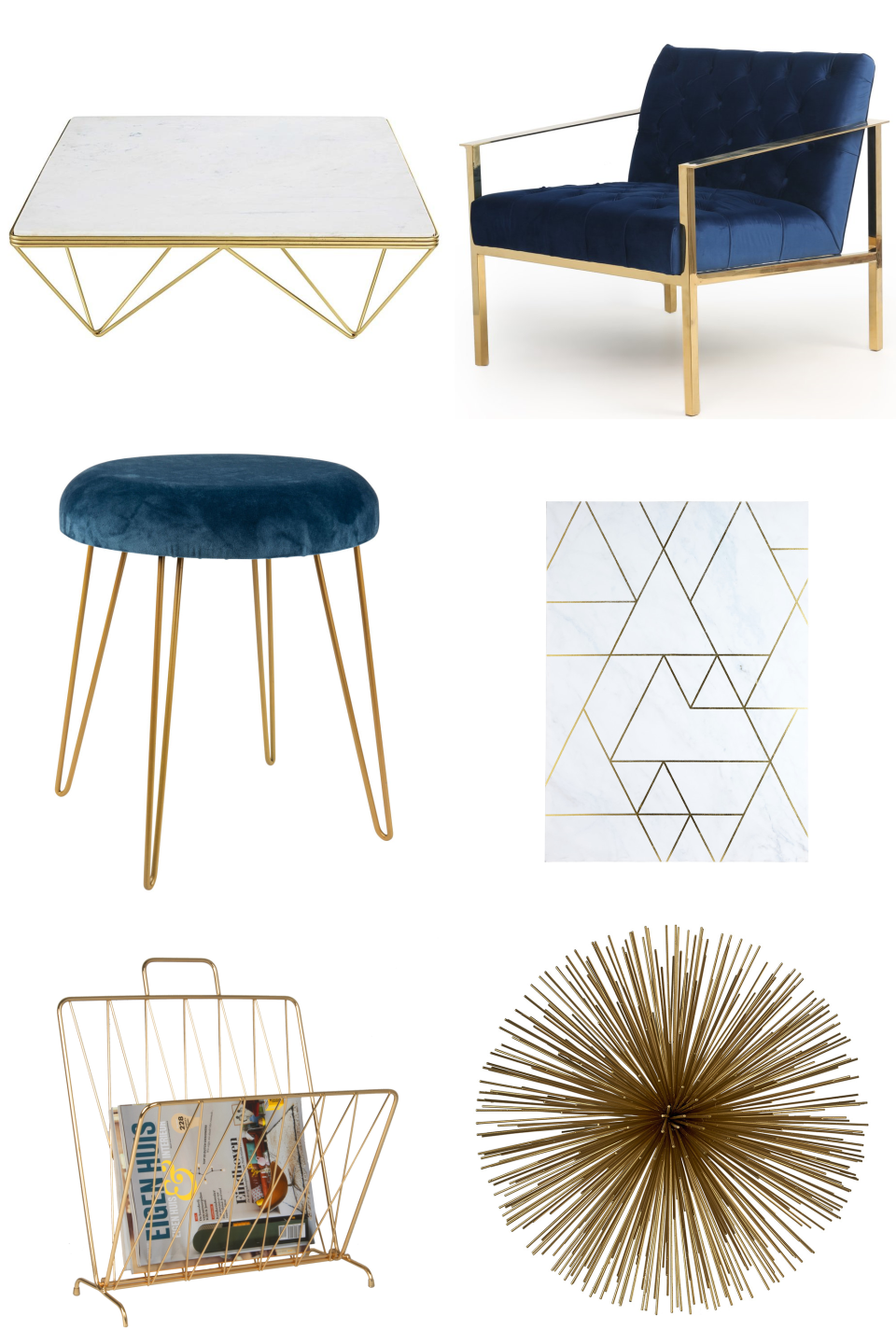 LAROCHELLE Navy Blue Stool with Gold Metal...