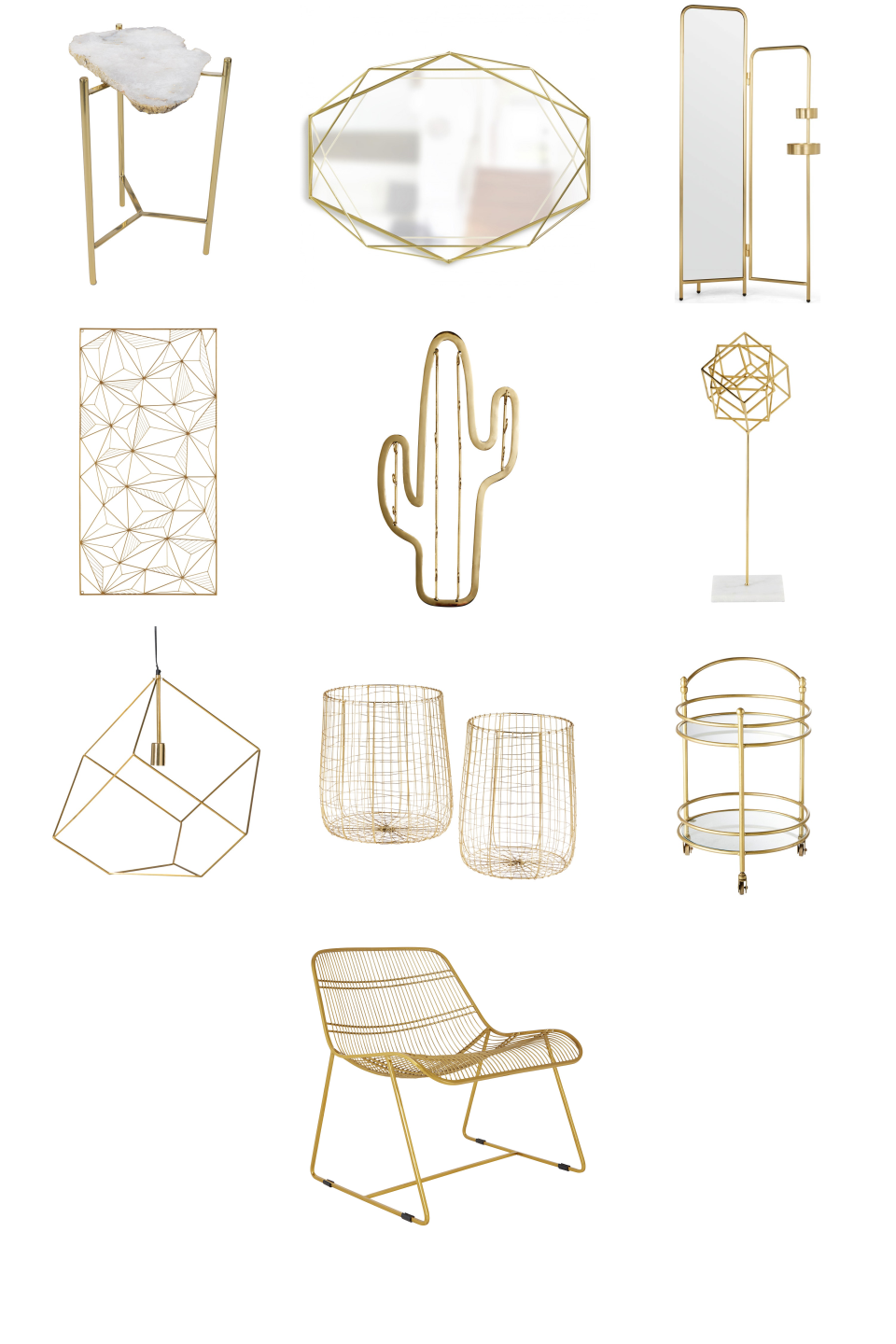 Habitat Tabitha Gold Metal Wire Lounge Chair...