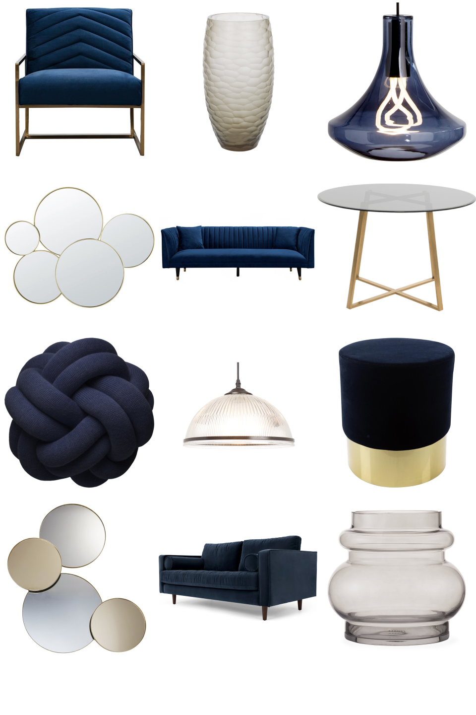 A by Amara - Round Velvet Stool - Navy/Gold...