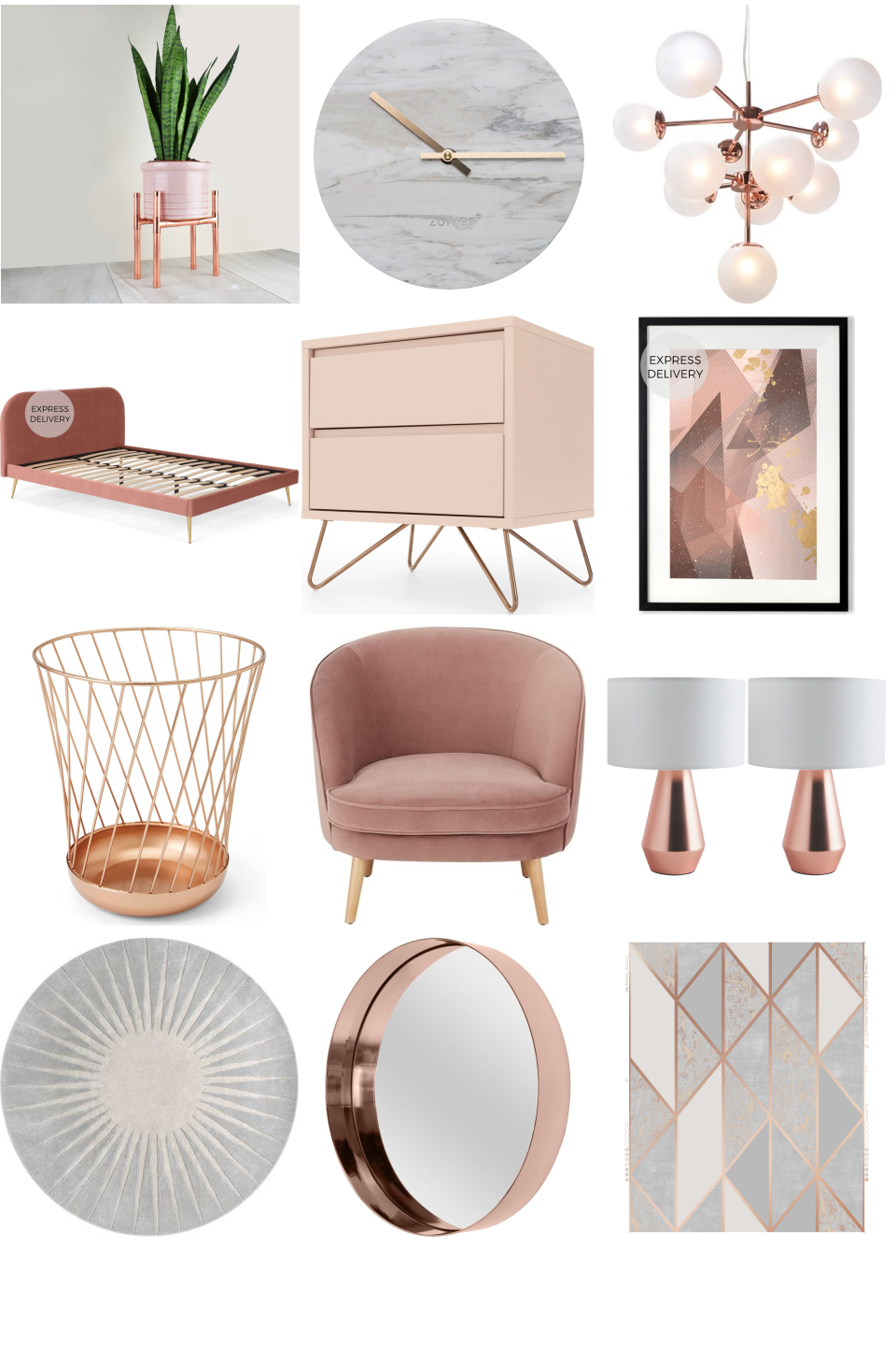 Elona Bedside Table, Dusk Pink and Copper...