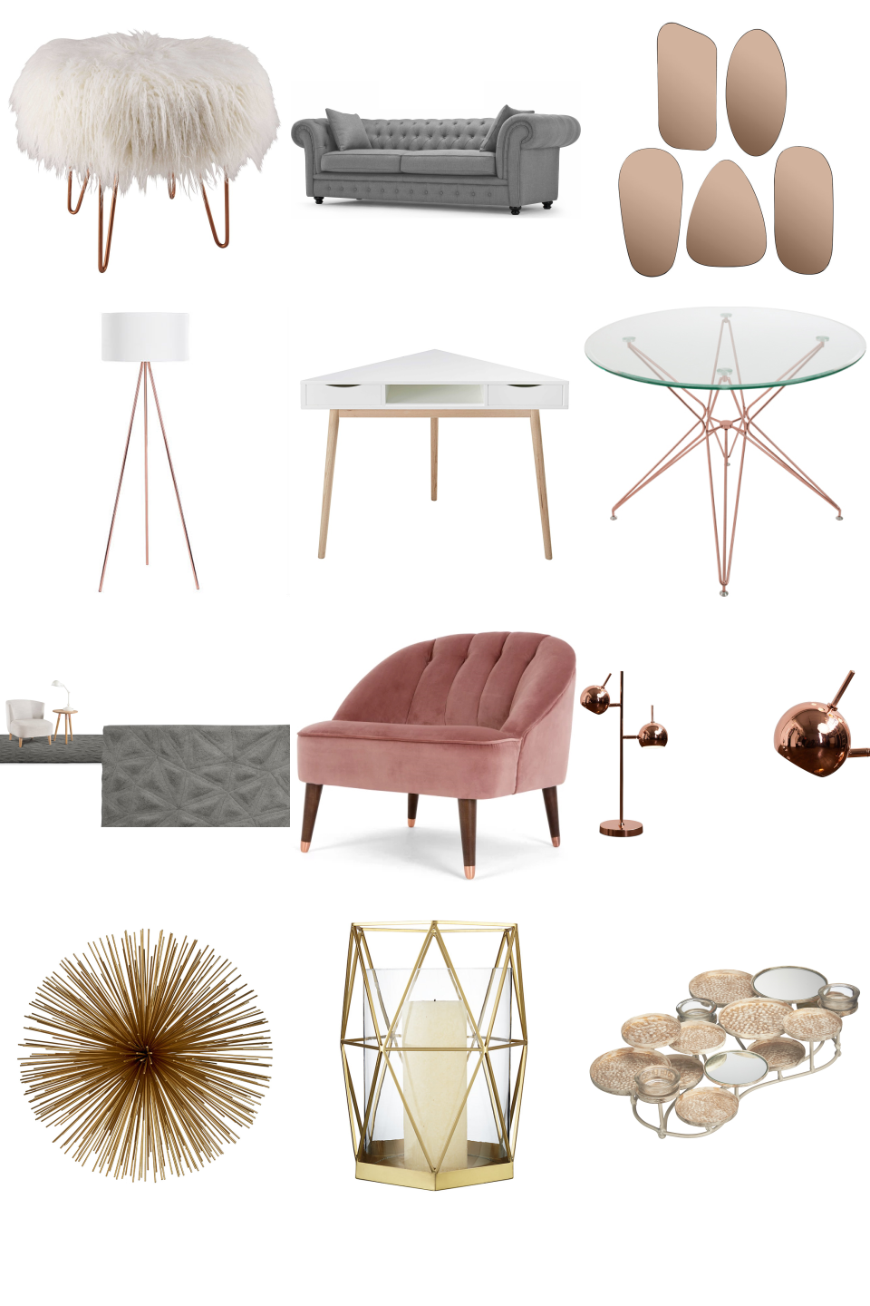 LOEN Copper Metal And White Faux Fur Stool...